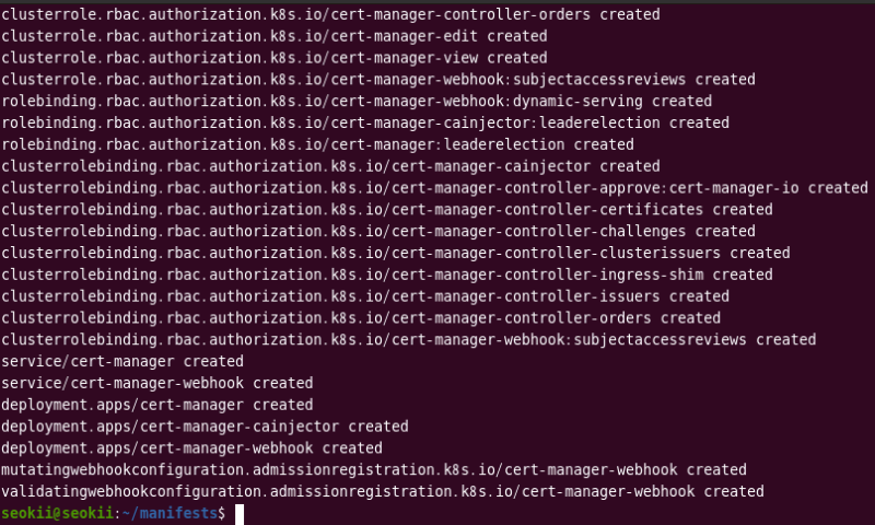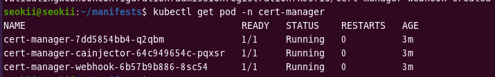 cert-manager의 pod가 모두 Running 상태임을 확인했습니다.