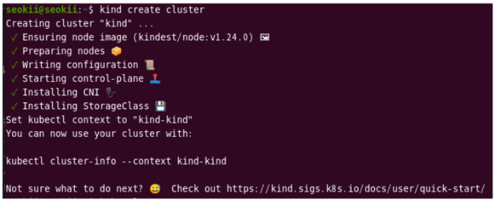 kind를 통해 쿠버네티스 클러스터를 생성합니다.
