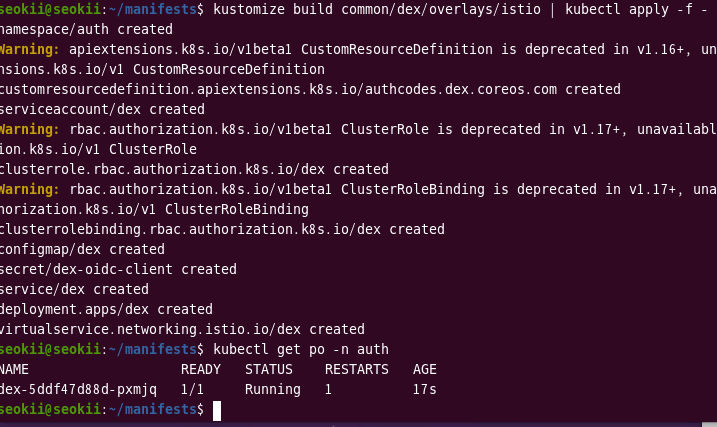 kustomize build common/dex/overlays/istio | kubectl apply -f -