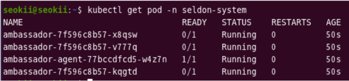 생성한 네임스페이스(seldon-system)의 pod를 조회합니다.