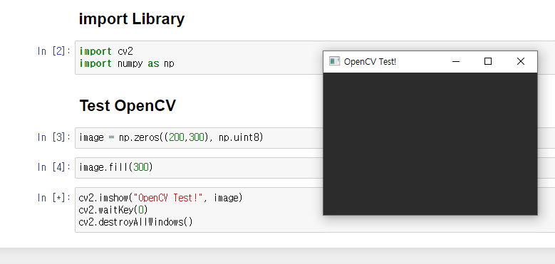 - OpenCV의 정상작동 여부를 확인하기 위해서 cv2와 numpy를 import 합니다.